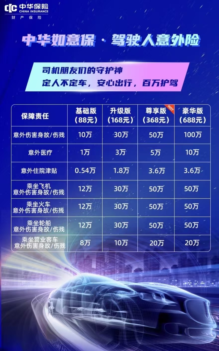 中华如意保-驾驶人意外险——中华联合财险安庆中心支公司